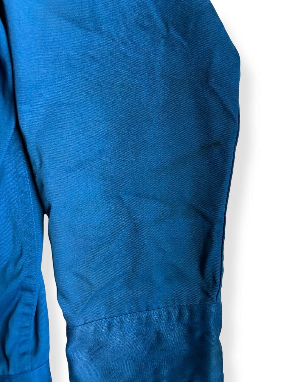 襟や裾、腕などに薄汚れ、胸ロゴにほつれや右袖口のボタンの欠損はありますが、まだまだ着用いただける状態です。