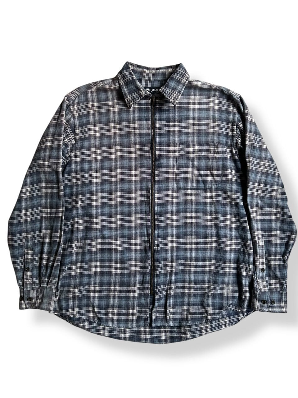 【Remake】00's old UNIQLO Zip-up Plaid Flannel Shirt XL