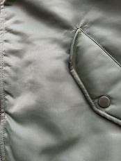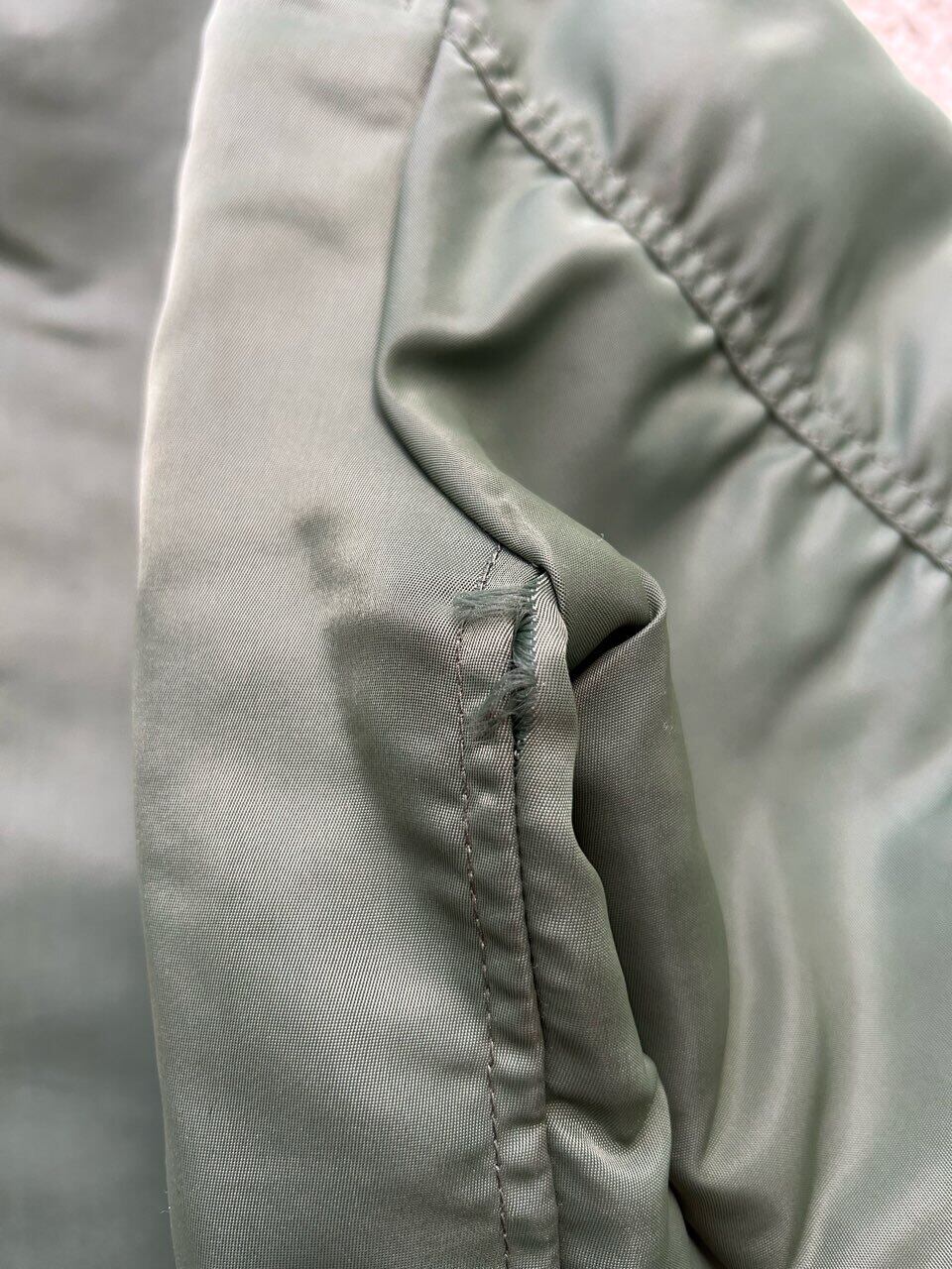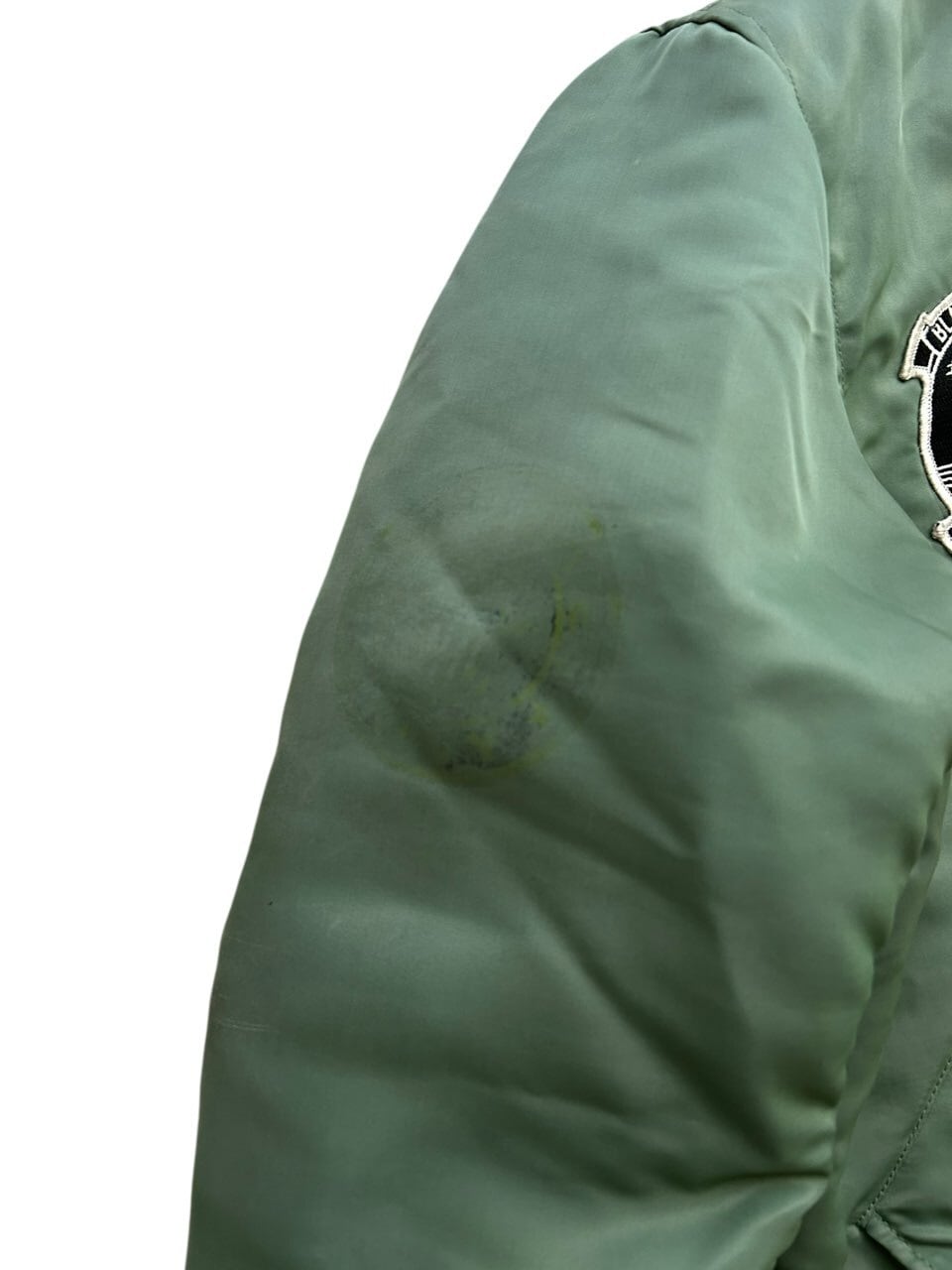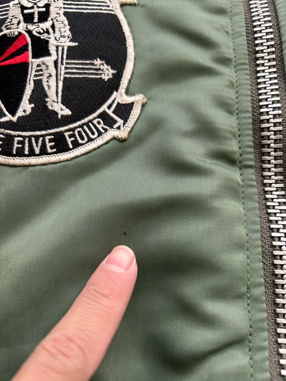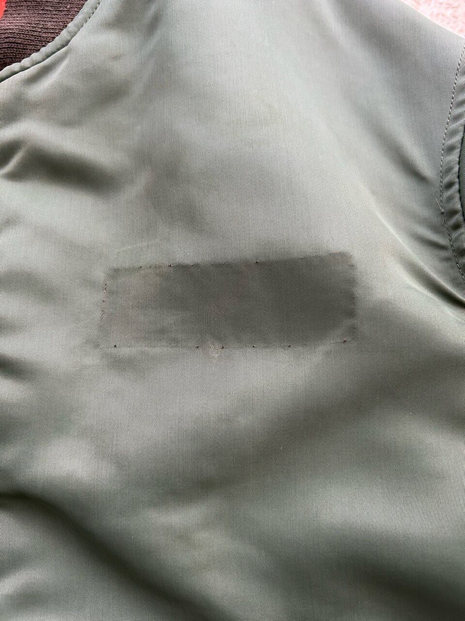 脇に若干のほつれ、所々に小さい薄汚れ、右腕と左胸にワッペン跡はありますが、特にダメージなど無く、着用には問題の無い状態です。