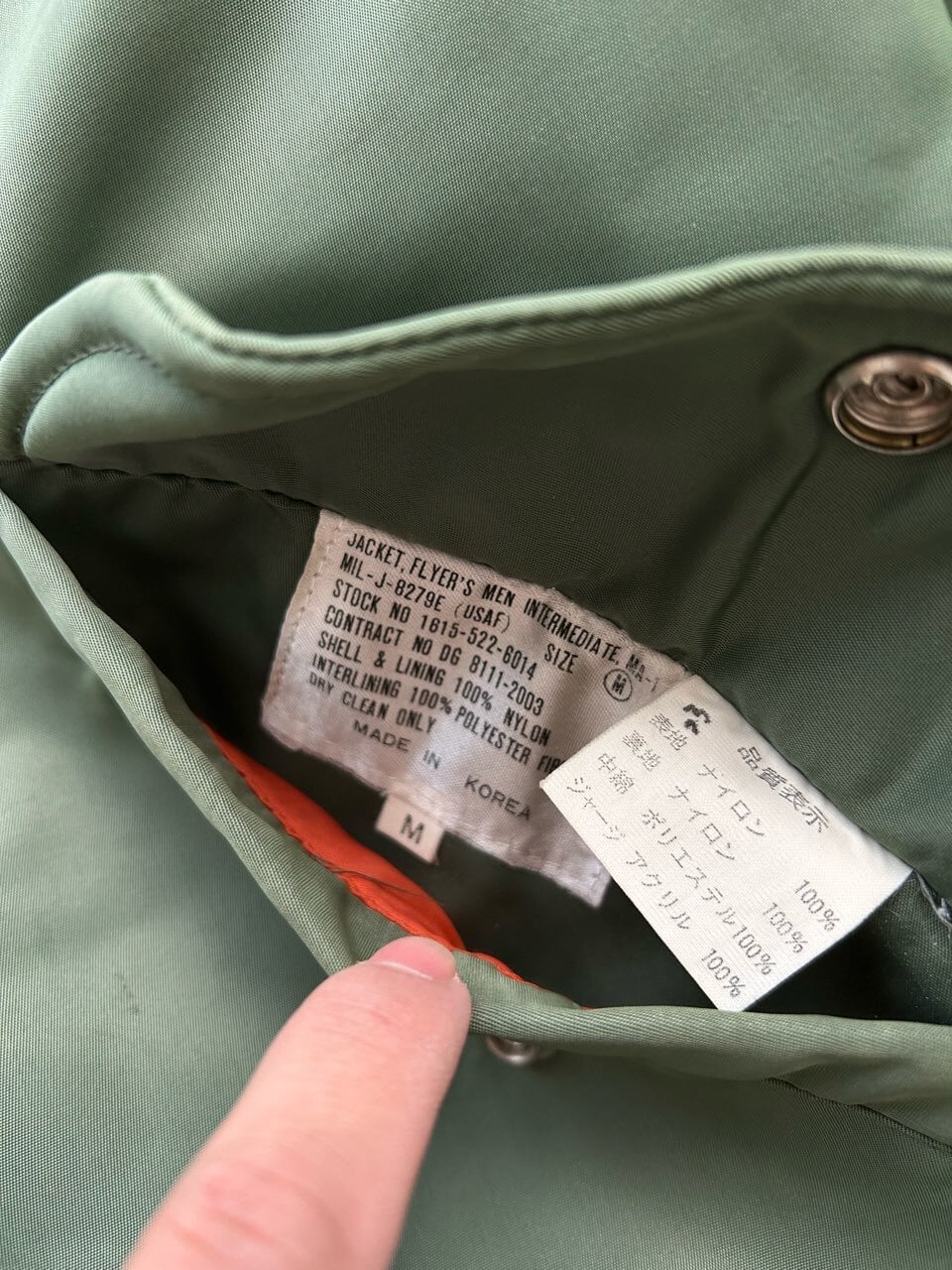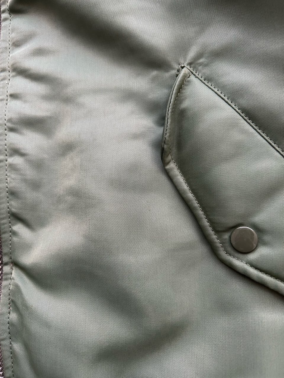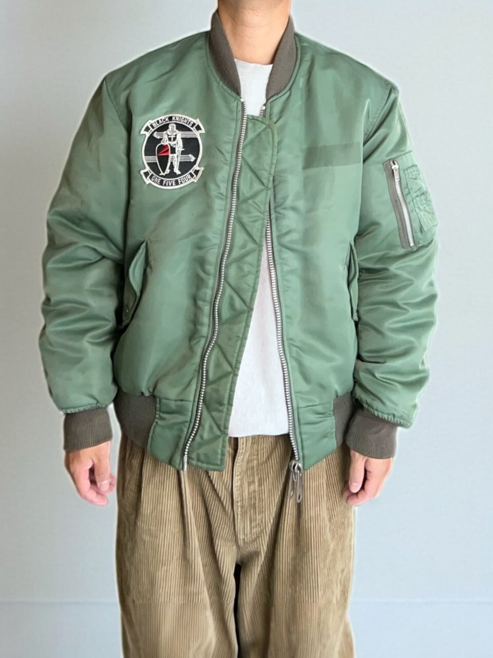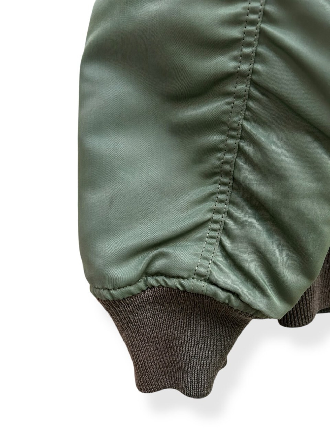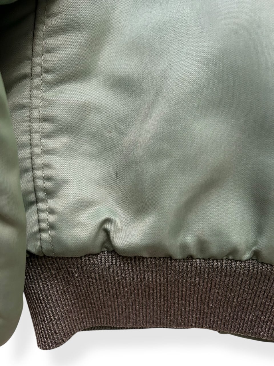 脇に若干のほつれ、所々に小さい薄汚れ、右腕と左胸にワッペン跡はありますが、特にダメージなど無く、着用には問題の無い状態です。