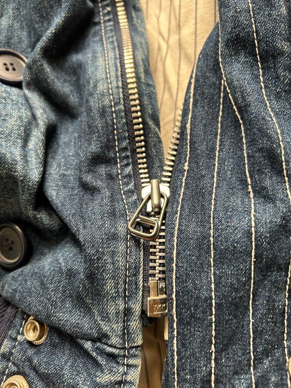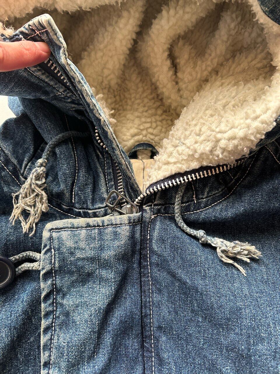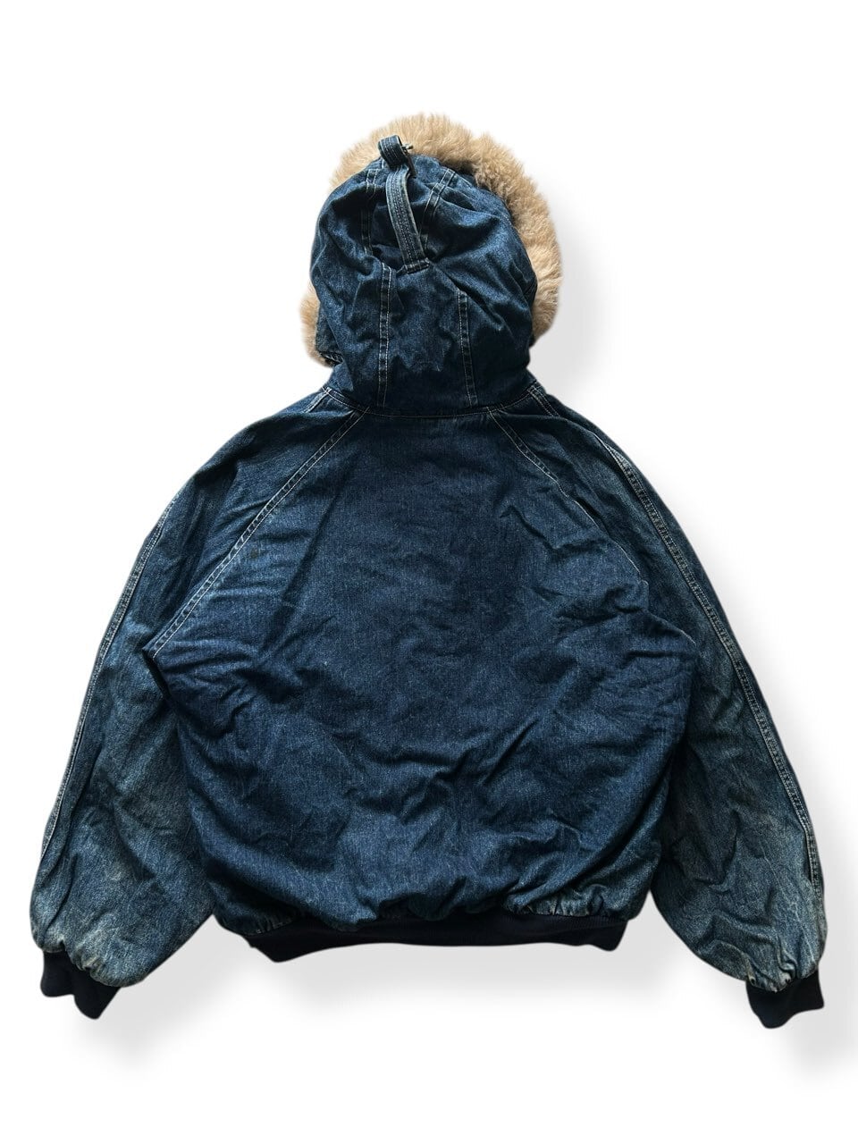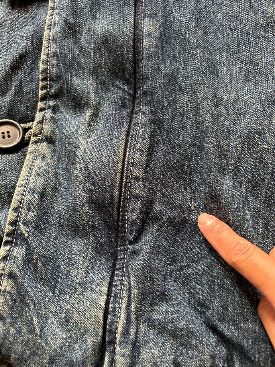 80'sのUSA製のラルフローレンのデニムのスウィングトップのような、ザラつきのある良い色味のインディゴで、裏地は中綿入りのコットンのストライプです。
